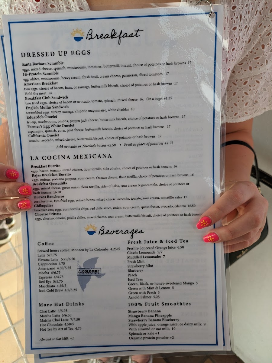 Two soft-poached eggs, locally-smoked salmon, cucumber, capers, red onion, cream cheese, tomato, dill & house-made hollandaise on a Bays English muffin. With a side of fresh fruit.